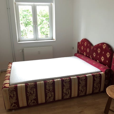 Enkeltseng lavet af snedker. Malet guldfarvet. Brugt i et par år. Fejler intet