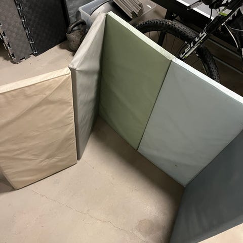 Super fantastiske måtter, der både kan bruges til koldbøtter men også bare til at sidde på og lege. De er også blevet brugt til at bygge et utal af huler, som siddeskammel eller som faldunderlag:-).