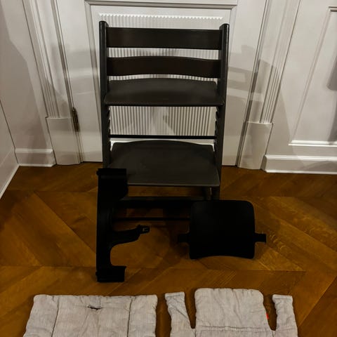 Flot grå TRIPP TRAPP Stol med al tilbehør.