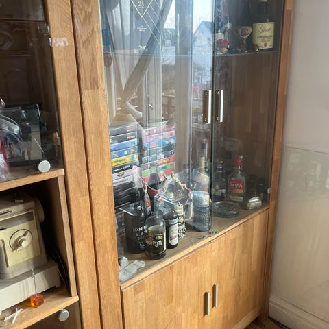 Vitrineskab af massiv lyst egetræ, matlakeret