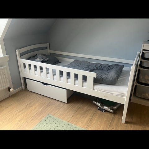 Fin børneseng med 2 skuffer til opbevaring