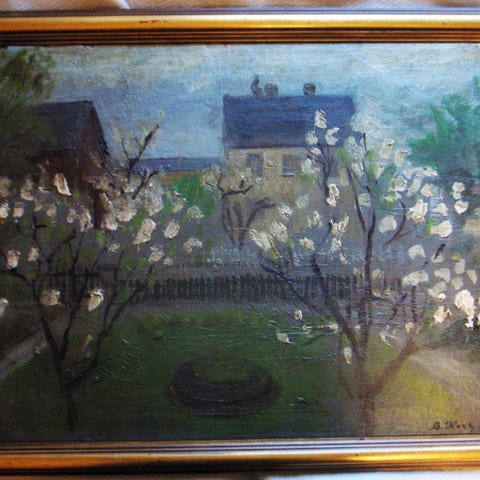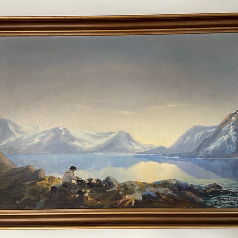 SOLGT Oliemaleri, E Thorbjørn, motiv: Landskab, stil: Naturalistisk, b: 45 h: 37, Fint landskab af Evelyn Thorbjørn. Olie på plade mål inkl ramme rent og fint fra ikke ryger hjem. Stedet kalder han Kingo-dalen på Grønland malet 17-6-1950 ..men den kan jeg ikke finde og man kan ikke google den ..måske nogen ved noget??