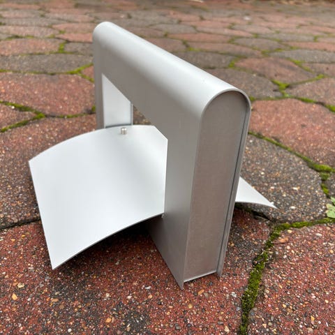 Flot væglampe i børstet stål med matteret buet glasskærm.