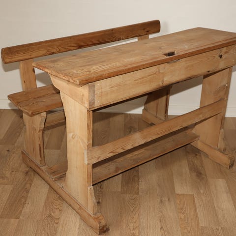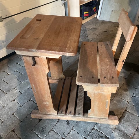 Træskolepult til børn med integreret bænk og skrivebord. Fremstillet i træ
