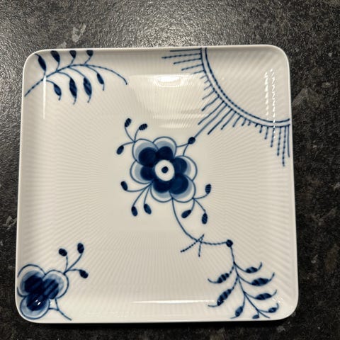 Royal Copenhagen Nax dyb tallerken med håndmalet blå dekoration på hvid porcelæn. Tallerkenen har en rund form og er velegnet til servering af supper, gryderetter eller andre retter, der kræver en ekstra dybde