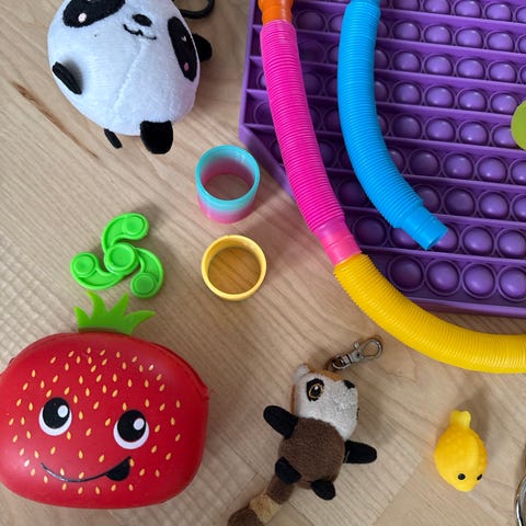 Sæt bestående af 2 fidget legetøj i forskellige former og farver. Designet til håndtræning og stressreduktion.