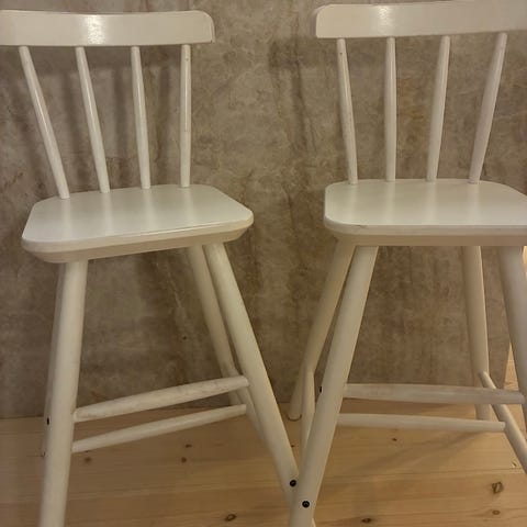 IKEA AGAM børnestol i sort farve. Stolen har en højde på 76 cm, sædedybde på 25 cm, sædebredde på 28 cm og sædehøjde på 52 cm. Materialet er træ.