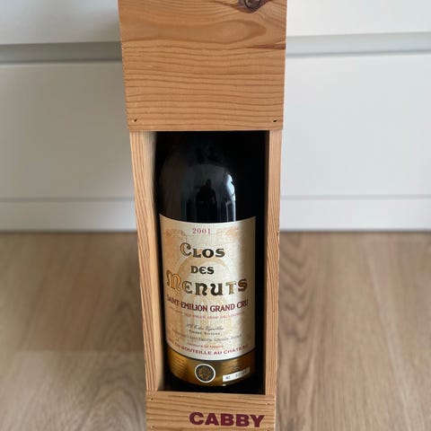 Clos Des Mernuts Saint-Emilion Grand Cry årg 2001 vin i trækasse leveret sammen med en ny campingvogn er måske noget for Cabby folk eller Cabby klubben sælges