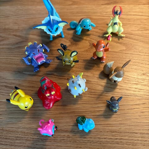 Pokémon samling bestående af forskellige mini figurer i plastik. Figurenes størrelse og farver varierer, og de repræsenterer forskellige Pokémon karakterer. Kan bruges som legetøj, meget godt til hvis man har børn der er glade for pokemon