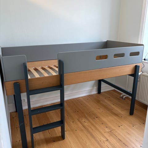 CLASSIC 3/4 sengehest (157cm) til CLASSIC halvhøj seng. Pris for nye er 730 DKK flexaworld.com/da-dk/products/safety-rail-3-4-white-washed-1.