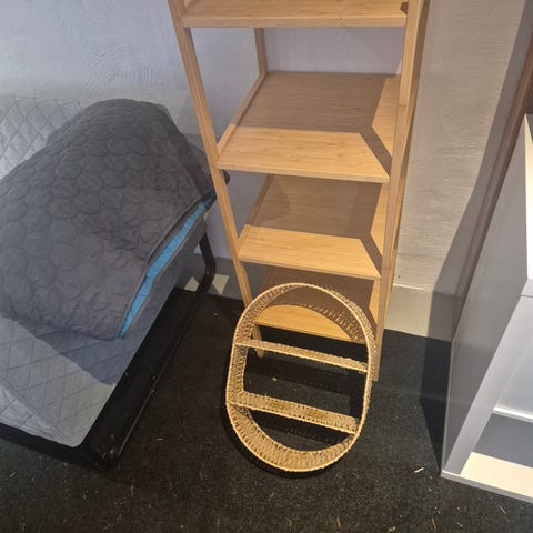 Væg reol i grå. Kan stå eller hænge