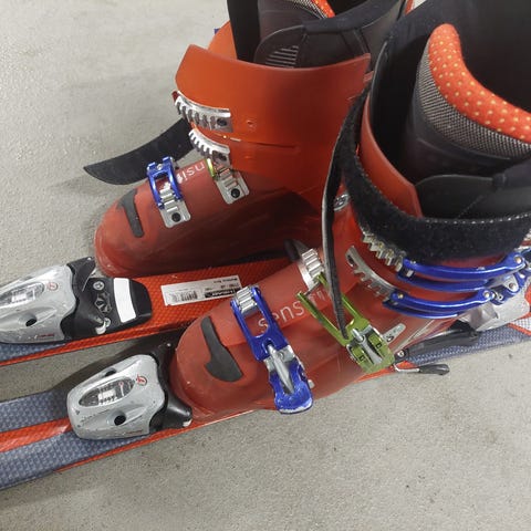 Short kart ski til voksne med Salomon bindinger evt. + stave, støvler og hjelm 1000,- for det hele.