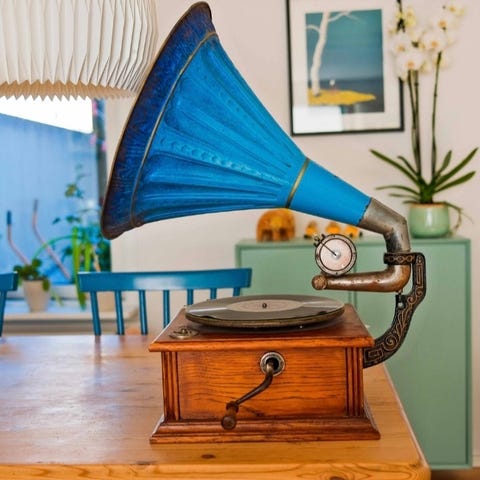 Stor original messing tragt til tragtgrammofon. 67cm lang. 44cm i diameter. Jeg påbegyndte polering i hånden, men gav op. Har for mange projekter. Den kan blive vildt flot, hvis man fx har en poleringsmaskine.