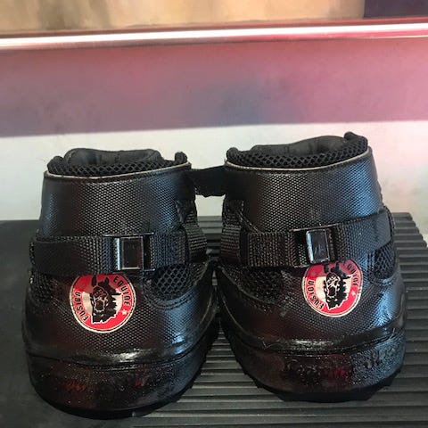 Kraftig & fleksibel hovsko. Har været i skoven én gang. Beskidte, næsten ikke brugt og slet ikke slidte i sålerne.