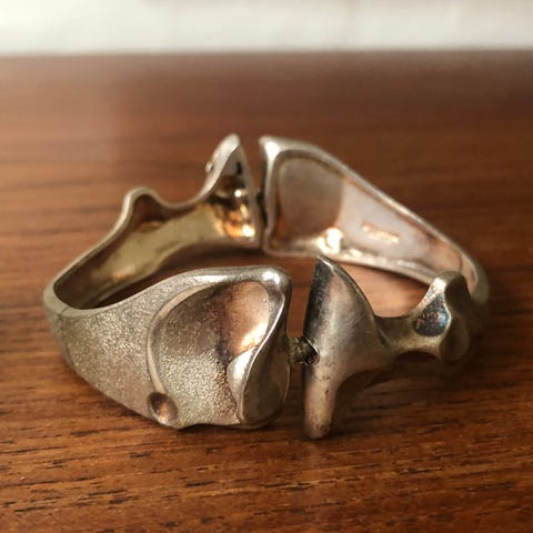 Lapponia armring fremstillet i sølv til kvinder. Armbåndet har en bred form med et unikt design og en åben struktur, der gør det justerbart. Materialet er sølv, og det er velegnet til daglig brug eller som tilbehør til forskellige outfits.