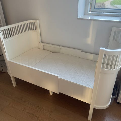 Super god stand og inkl madras samt madrasforlænger. Nypris for sengen: DKK 7999,- og nypris for madras-sæt: DKK 2499,- (total DKK 10.498,-). Kan afhentes i Gentofte.
