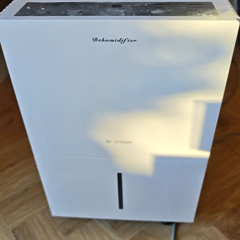 Meaco Dual affugter med kontrolpanel på toppen, hvid farve og kompakt design. Enhed med justerbare indstillinger til affugtning i hjemmet. Fjerner 3 liter vand på 20 timer. Høj effekt. Skal fikses