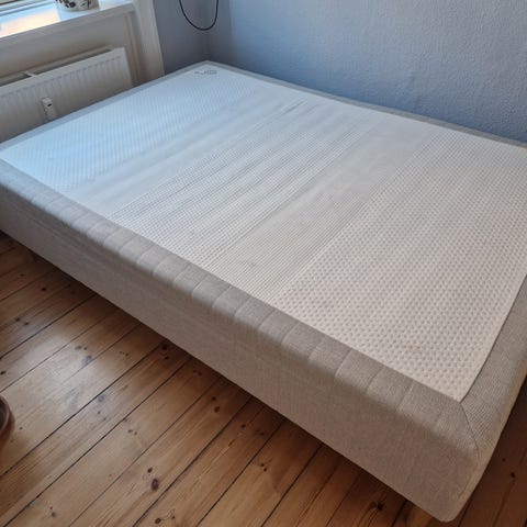 Boxmadras fra Ikea. Den er fra 2009. Der er mærker på siden. Måske kan det renses. Sengen er i fin stand. Jeg har haft en tyk top madras på og har derfor ikke sovet direkte på sengen.