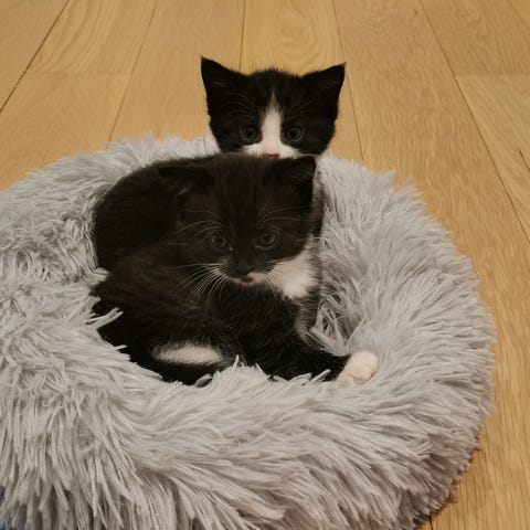 2 skønne killinger søger nyt hjem . De er født her men grundet sygdom og indlæggelse har jeg først haft overskud til at sende dem videre nu,