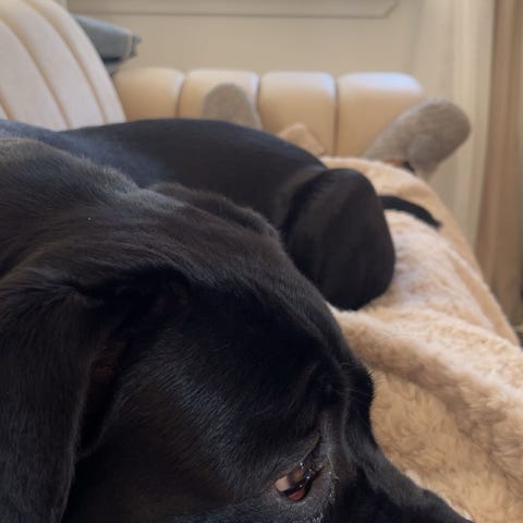 Det er med stor sorg, at vi desværre er nødt til at finde et nyt, kærligt hjem til vores dejlige hund, da min søster har udviklet allergi.