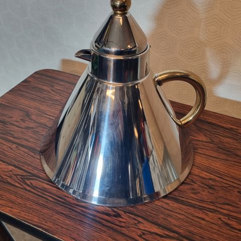 Alessi Bordur tekande fremstillet i rustfrit stål. Tekanden har et unikt design med en kugleformet kande og en rund base med to lodrette søjler. Velegnet til brygning og servering af te. Kan dog også anvendes til fondue servering, meget flot at have stående fremme