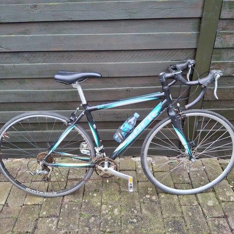 Den har nogle små ting som skal rettes på den, ellers køre den fint. Den skal bruge ny slange på baghjulet. 2 ekstra slanger følger med.