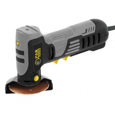 Far Tools Rex 120D vinkelsliber med 120 mm skive, inklusive slibeskive, børstehoved og ekstra tilbehør. Værktøjet er egnet til slibning, polering og rengøring af metaloverflader. Med ekstra slibehoveder.