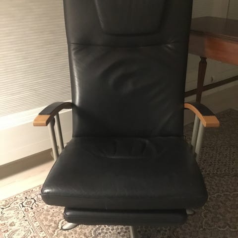 Sorø lænestol, str medium - sædehøjde 47 cm, materiale - natur/lak sort læder/pvc 100, ny pris - 13.499kr. i rigtig god stand da den næsten aldrig er blevet brugt.