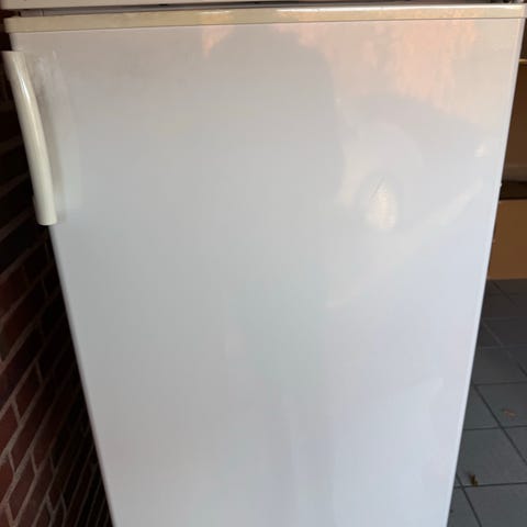 Matsui skabsfryser med hvid finish. To skuffer, hvoraf den ene af knækket, men har ikke en funktionsmæssig betydning.