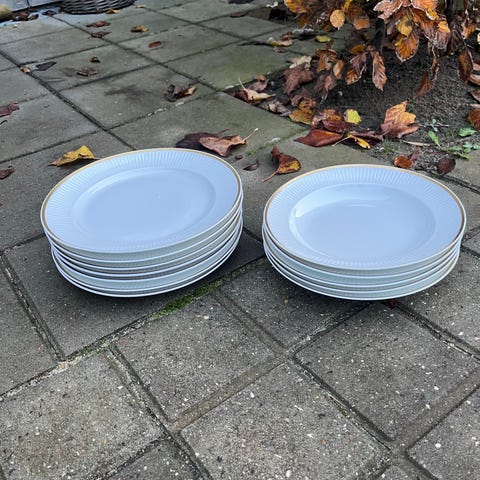 8 stk. Royal Copenhagen Tulla Hvid Riflet dyb tallerken med guldkant.