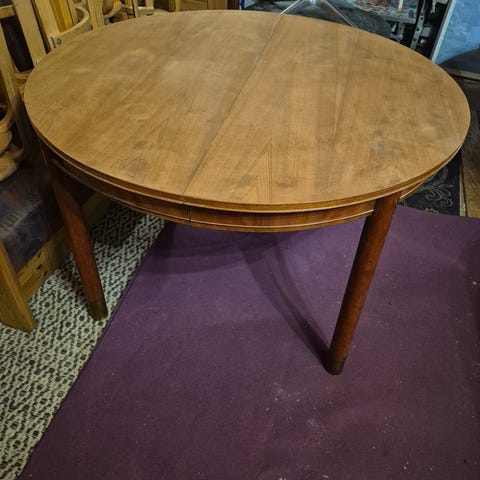 Flot og stabilt rundt spisebord med udtræk og 2 ekstra tillægsplader.