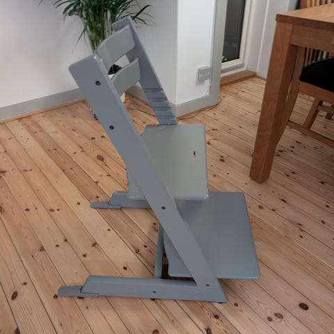 Sort trip trap højstol. Brugt med i fin stand - har spor efter brug.