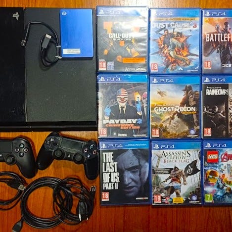 PS4 - 500GB m. 2 controllere og 4 spil