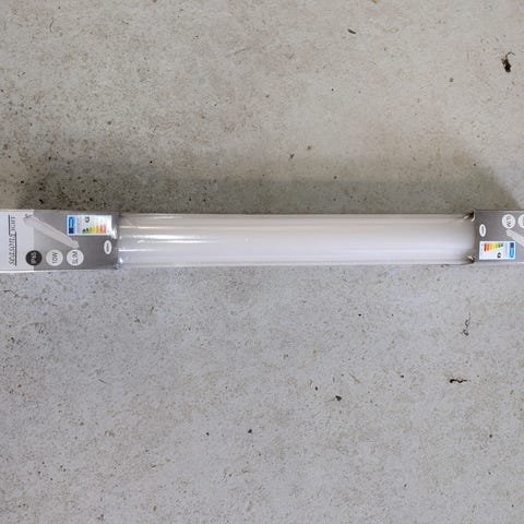 Helt nyt (stadig i indpakningen) lysarmatur 18w og 126 cm langt til værkstedet fx. Købt i forbindelse med ombygning hos os selv, men viste sig at være for stor. Inkl. LED-pære.