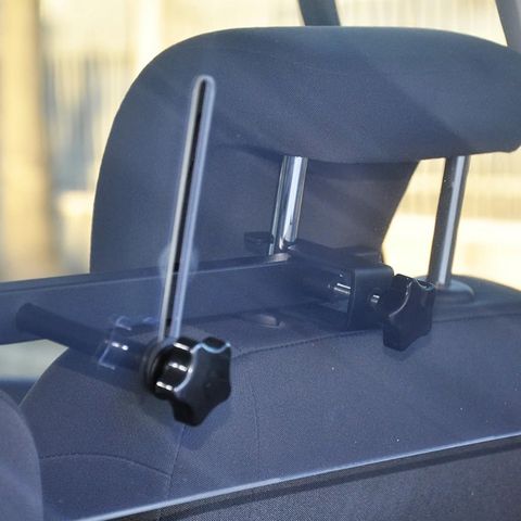 Sort justerbart hundegitter til adskillelse af bagagerum og passagersæde. I metal. Min højde 62 cm, max højde 110 cm, min bredde 85 cm, max bredde 150 cm