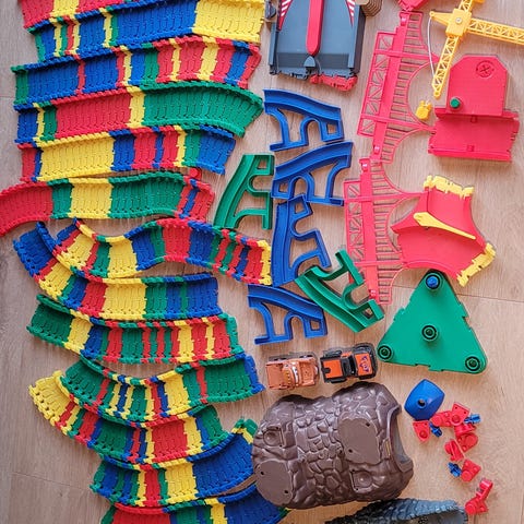 Jeg sælger min fine Flexi Trax bane med biler. Fint og fungerende.