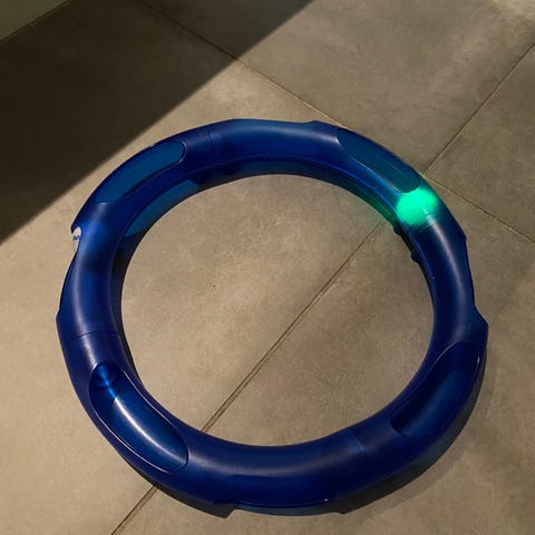 Interaktivt kattelegetøj i form af raslende bold og en hale af fjer som bevæger sig, når katten dasker til bolden. Næsten ikke brugt.