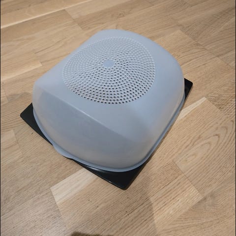 Tupperware osteklokke med filter i låget - som holder osten frisk.