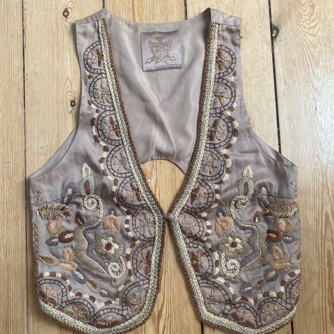 Vest, Vest, Culture, str. L, Brune nuancer, Ubrugt, Flot vest med broderet palietter på