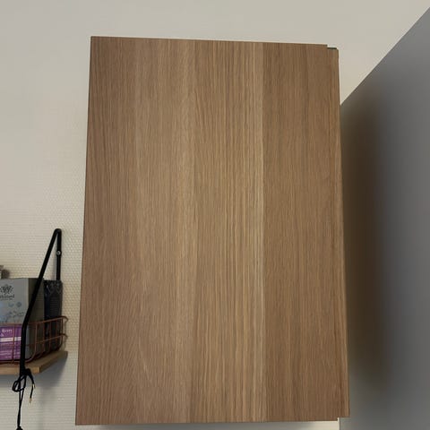 IKEA METOD vægskab med ASKERSUND front og UTRUSTA hængsler med dæmper (løfter opad — super smart 👍).