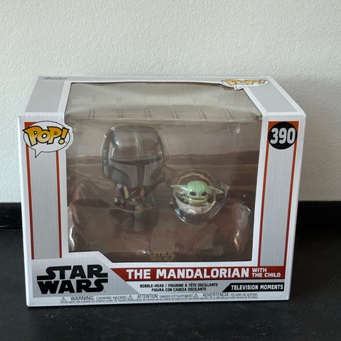 Funko Pop Star Wars The Mandalorian & The Child on Bantha figurine. Samlerfigur i plastik med detaljeret design baseret på karaktererne fra Star Wars-serien. Figuren er pakket i original emballage.