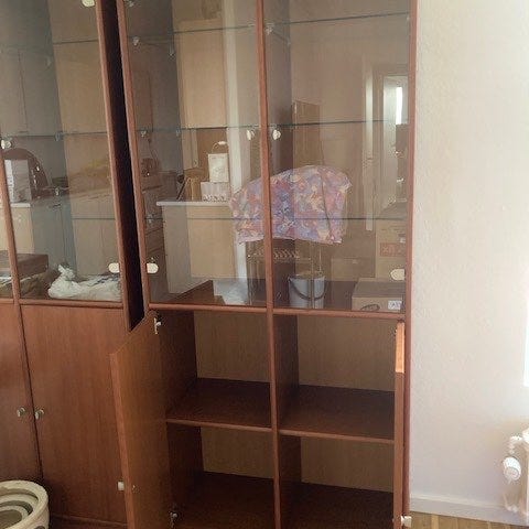 Indvendigt med hylde i glas og god opbevaringsplads – perfekte til service, glas, bøger eller pynt. Kan stå sammen eller bruges hver for sig.