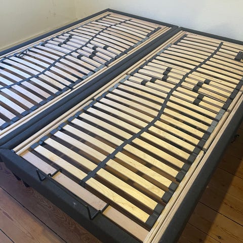 Sengebund med trælameller og metalramme. Passer til standardmadrasstørrelse. Designet til at give støtte og ventilation til madrassen.