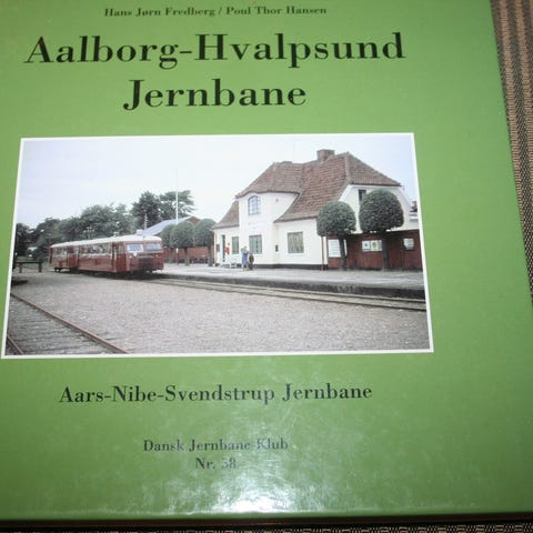 Bog med titlen Aalborg-Hvalpsund Jernbane, der indeholder historiske oplysninger, kort, billeder og beskrivelser relateret til jernbanen mellem Aalborg og Hvalpsund. Indeholder detaljer om Aarhus-Nibe-Svendstrup Jernbaner og er udgivet af Dansk Jernbane Klub.