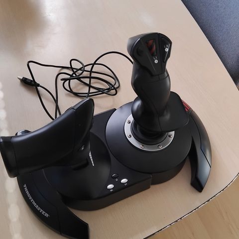 Thrustmaster T.Flight Hotas X flystick i sort farve. Flysticket er designet til brug med computerspil og tilbyder præcis kontrol med flere knapper og en joystick. Passer til brugere, der ønsker en realistisk flyspilsoplevelse.
