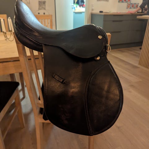 Brugt i overgang til større sadel til barn, i ca 6 mdr. I meget pæn stand.