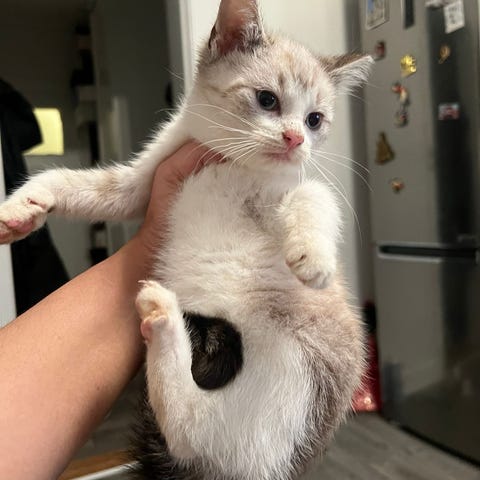 Han er sund, rask og ren, og han er fuldt vant til kattebakke. Han spiser og drikker fint og trives rigtig godt.☺️