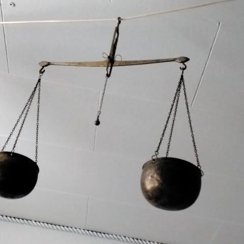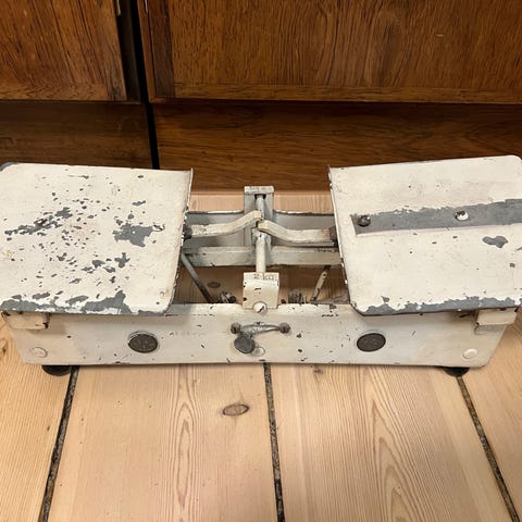 Gammel balance vægt ny malet, i grøn farve og af jern, små 100 år gammel.