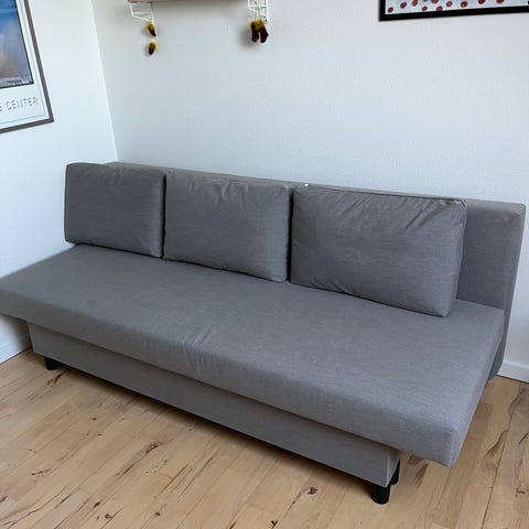 Sovesofaen er købt i Jysk Maj 2025 - nypris 2099 nu - (købspris 1500 kr. Maj måned)