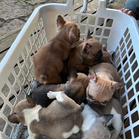 Hvalpene er i dag 5 uger gamle og kan overtages, efter 8 uge.